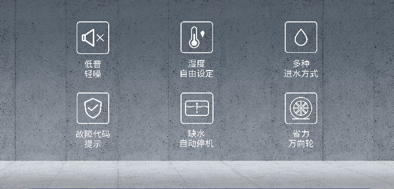 ·水桶水管两种进水方式·湿度可自由设定·缺水自动停机·风机延时保护